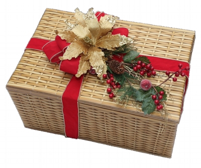 *Baú de Natal Decorado com Laço e Galho Natalino.