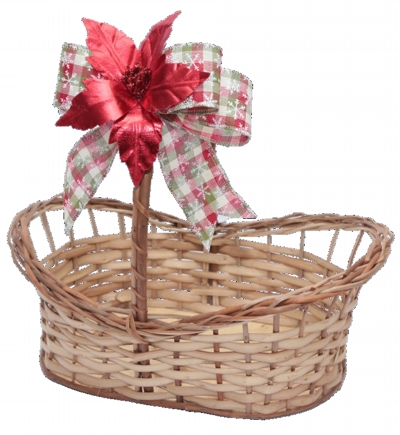 * Cesta de Vime Decorada com Celofane, Laço e Flor Natalina