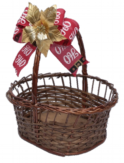 *Cesta de Vime Oval Decorada com Celofane e Flor Natalina.