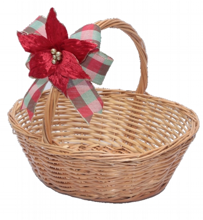 *Cesta Cabeção de Vime Decorada com Celofane e Flor Natalina.